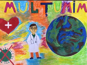 Lucrările copiilor participanți în cadrul proiect caritabil „SUSȚINEM MEDICII” – perceput cu scopul de a sprijini medicii și personalul medical care luptă în prima linie cu COVID-19.